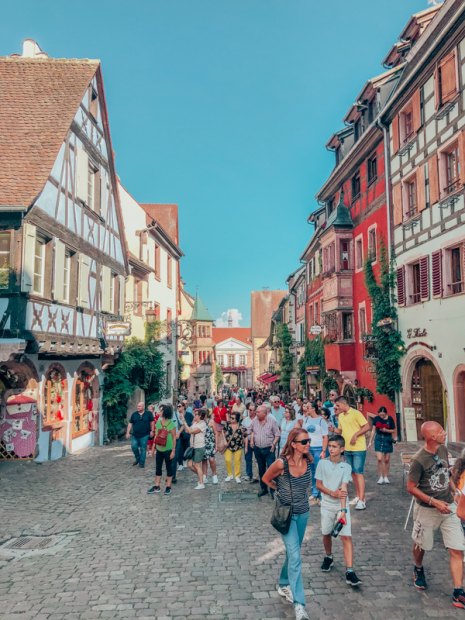 Fransa sınırlarında Alman ruhu taşıyan masal kasabası olarak özetleyebilirim Colmar’ı. Biz Ağustos ayında gittiğimiz için heryer rengarenk çiçeklerle bezenmişti. Üzerlerinde kalp olan panjurlu evlerini ve kanallarından dolayı Küçük Venedik’e benzetilen Little Venice’i, Fransız ve Alman tatlılarının mükemmel birleşimini tadabileceğiniz pastanelerini ve de sokalara taşan masaları dolduran kalabalık en çok hatırladığım şeylerin başında geliyor. Panjurlardaki bu kalp oymalar o evde evlenme çağında bir genç kızın yaşadığını simgeliyormuş. Kız evlenince de kalpin içi ahşap bir parça ile dolduruluyormuş. Tüm kasabayı gezmek isterseniz 1 gün ayırmanız yeterli. Biz vaktimiz olduğu için iki gün ayırarak keyif alarak daha yavaş bir hızda gezdik. Çok fazla hediyelik eşyacı var. Eğer bu mağazalarda gezmekten hoşlanıyorsanız ve de iyi bir yemek yemek istiyorsanız 1 gün size de yetmeyecektir.