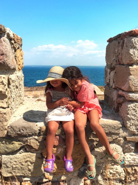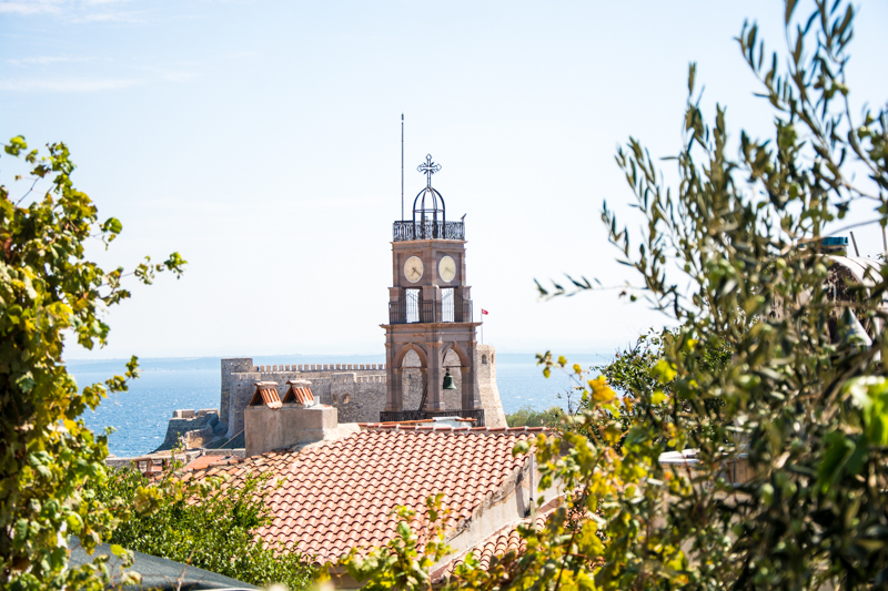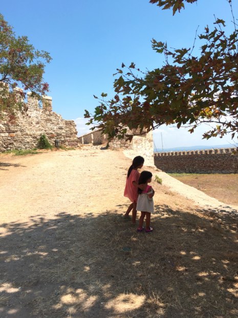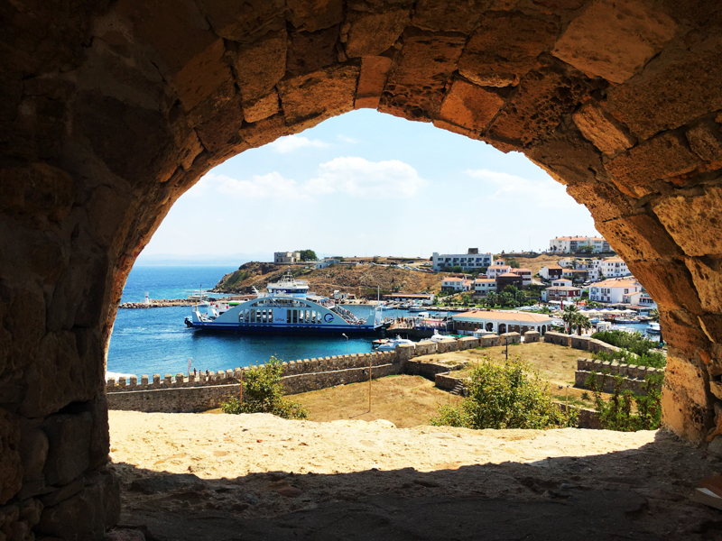Feribotla gelirken size ilk merhaba diyen bu güzel kaleyi sabah 10.00 akşam 20:00 arası gezebilirsiniz. Biz hava yavaş yavaş serinlemeye başladığı saatlerde akşam üzeri altı gibi gittik. Tabiki tüm çocuklar gibi bizim kızlarda burayı çok sevdi. Biraz gezip harika ada manzaralarını fotoğrafladıktan sonra kalenin hemen ilerisinde ki sahilde kurulu pazar yerini gezdik. Hediyelik eşya almak için buradaki yerleri tavsiye edebilirim.Biraz daha içerlere girince Çavuş üzümü, ev yapımı reçeller, kurutulmuş ada baharatları satan tezgahları görebilirsiniz. Eğer mevsimindeyseniz adaya özgü bu lezzetli üzümlerden bol bol yiyin!