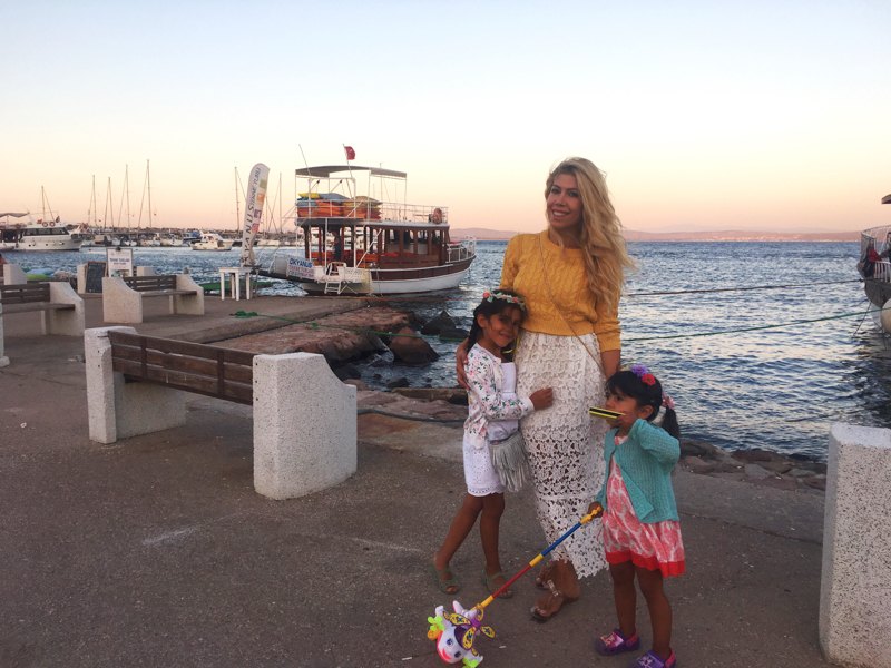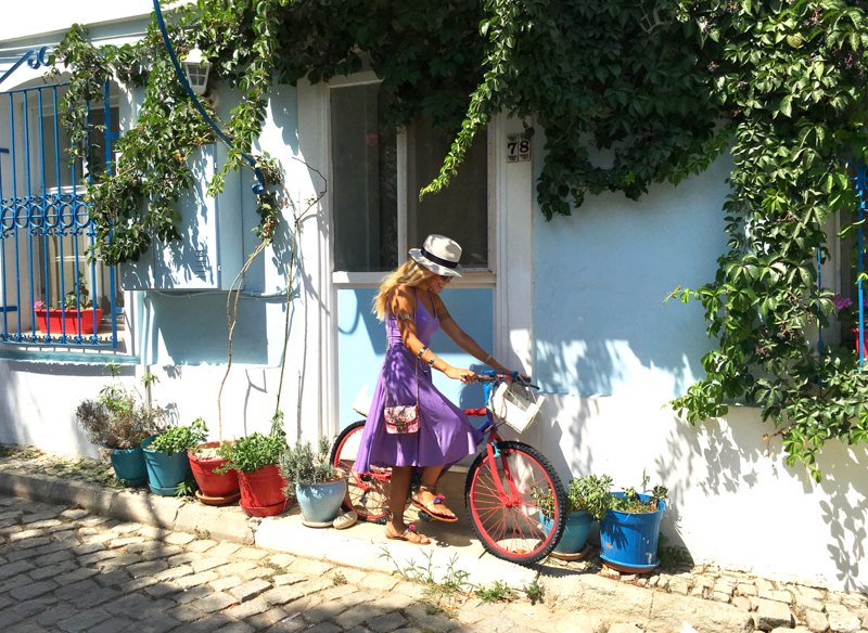Bozcaada tatiline teyzelerim, annem, kızkardeşim, kuzenlerim ve kızlarım hep beraber çıktık. Bu kadar kadın bir arada olunca ev kiralamak da çok daha mantıklı oldu. Bir tanıdığımız aracılığıyla karşılıklı tek katlı iki bağ evi kiraladık.