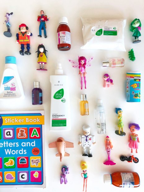 İlaç ve acil durum çantası. Ben seyahat öncesi mutlaka yanımda küçük kazalara ve hastalıklara karşın bir sağlık kiti bulundururum. Her seyahate her ilacı götürmek durumunda değilsiniz. Ben fikir vermesi açısından hepsini yazıyorum. Ateş düşürücü, derece, yara bandı, yanık merhemi, ıslak mendil, antibiyotik, sinek kovucu sprey, Aloe Vera sprey, kaşıntı giderici krem, alerji için ilaç ve probiyotik takviye. Lütfen kendi çocuk doktorunuza bu konuda danışın ve sizin için doğru ilaçları yazmasını isteyin. Özellikle Uzakdoğu gibi destinasyonlara giderken mutlaka her iki kızım için yaşlarına ve kilolarına uygun bir antibiyotiği yanıma alırım. Çok şükür hiç kullanmak gerekmedi ama giderken de içim rahat oldu. Orada birşey olursa doktorunuzu arayın ve kendiliğinden ilaca başlamayın.
