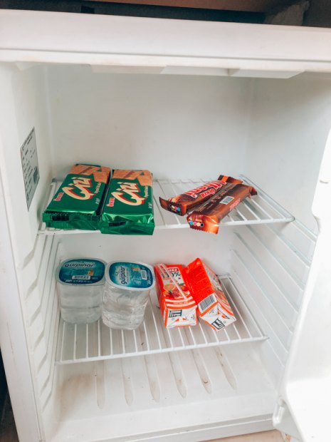 Odalarda çöp kutusu, piriz (tekli), ayarlanabilir klima, mini dolap, çarşaf, yastık, terlik ve temiz havlu bulunuyor.