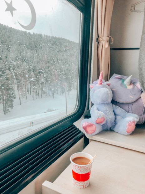 Trende yemekli vagon var. Genellikle paketli gıda satılıyor. Biz sadece su ve kahve aldık. Yanınızda yemek, içecek ya da içki getirebiliyorsunuz. Kendi odanıza su ısıtıcı koyup çay bile demleyebilirsiniz. Odada bir nevi piknik havası yaşanıyor :) Bu da bence keyifli yanlarından biri. Yemekli vagona ise dışarıdan yiyecek getirmek yasak. Erzurum’da trene Çağ kebap söylemek bir gelenek. Görevliye söylemeniz yeterli.