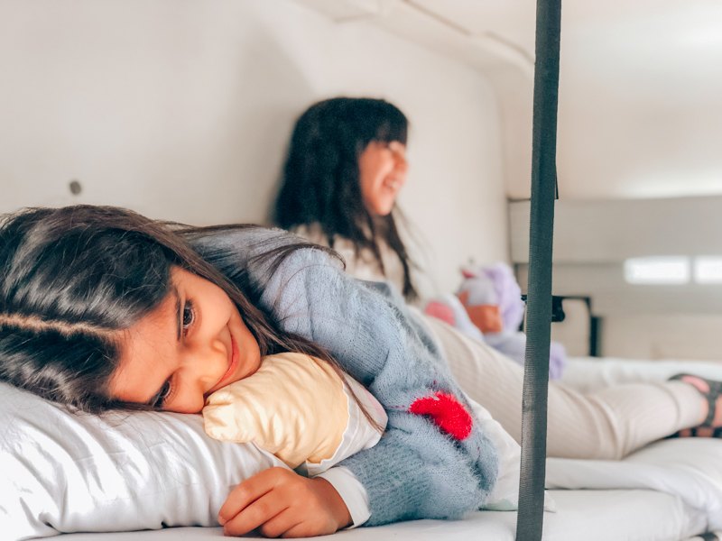 Biz yanımızda kitap, puzzle, oyuncak ve tabiki aidiyet hissedecekleri yastıklarını da getirdik. Kardeş oldukları için zaten sürekli bir oyun halindelerdi. Odanın ısısı içeriden ayarlanabiliyor ve gayet sıcaktı. O yüzden hiç üşümedik.