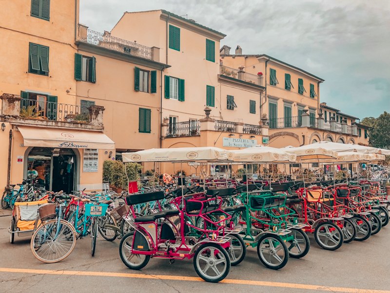 Toskana kasabalarını gezmeye Lucca’dan başladık. Luccainn’in 2 odalı apart dairelerinde kaldık. Gayet temiz ve kullanışlıydı. Gece geç saatte giriş yapmamız hiç sorun olmadı. Ertesi sabah L’Angolo Dolce di Sandra’da kahvaltı edip şehri gezmeye başladık. Lucca’nın düzenli sokak ağı Roma dönemden kalmadır. Gezilecek yerlerin başında eski şehri çevreleyen yekpare surları gelir. Bu surların üzerinde yürüyüş yapabilir, bisiklet kiralayıp gezebilirsiniz. Ara sokaklardan gezerek elips şeklindeki şirin meydanı Piazza dell’Anfiteatro’ya çıkıp buradaki kafelerde bir kahve molası verebilirsiniz.