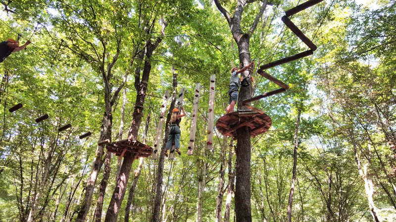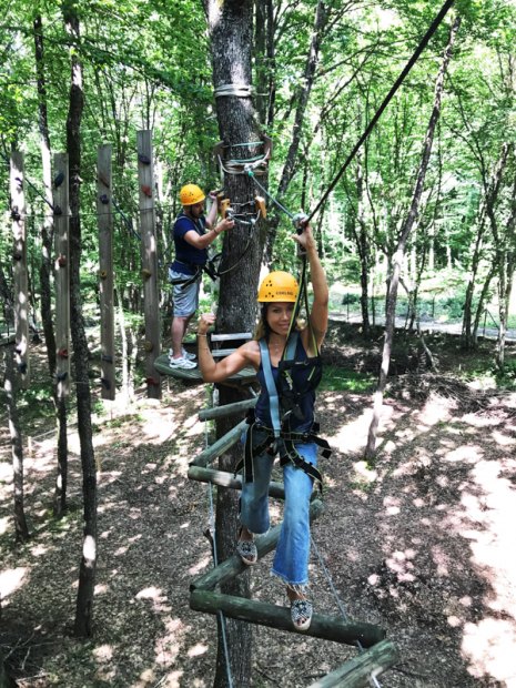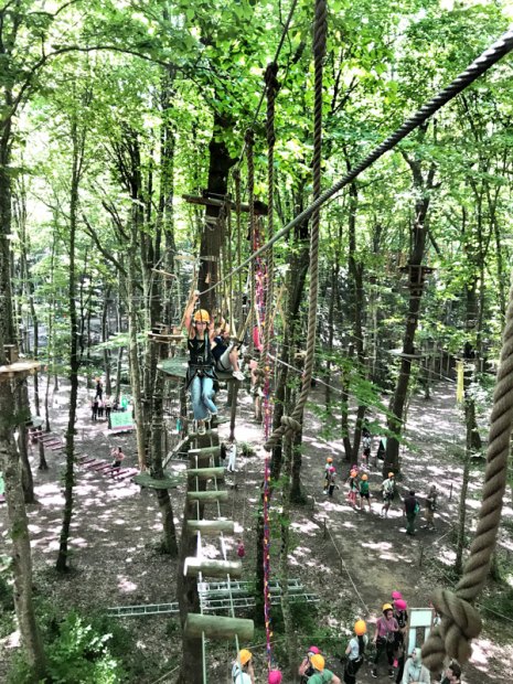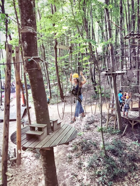Bizce en adrenalin yüklü ve eğlenceli alan Yüksek ip parkuruydu. Kendinizi sanki bir macera filminin başrol oyuncusu gibi hissediyorsunuz. En azından bizim için öyleydi! Parkurlarda Survivor’daki gibi bir yarış yok ve grup halinde beraber hareket ediyorsunuz. İplerin üzerinde her defasında bir kişi olabiliyor. O yüzden ne kadar ilerleyeceğiniz veya ne kadar sürede tamamlayacağınız tamamen size kalmış. 16 metre yükseklikte siz, ağaçlar ve çelik halatınız başbaşasınız!