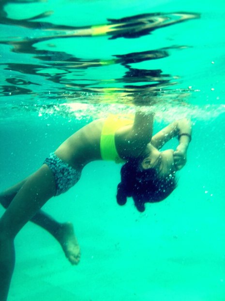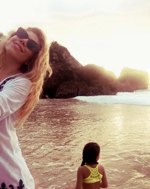 Arabada Starbucks’dan aldığımız kahvelerimizi duyumlarken gün boyu gezeceğimiz yerler hakkında konuşmaya başladık. Julia Roberts’ın meşhur filmi “Eat Pray Love”ın çekildiği sahil aslında bu film ile ün kazanmış. Kayalık bir yoldan aşağıya inerek ulaştığımız kumsalda şezlong, havlu vaya eşyalarınızı koyacak bir yer yok. Genellikle fotoğraf çekmek için geliniyormuş. Tabi altı buçuk yaşında kıştan gelmiş denizi özlemiş bir su canavarına bunu anlatmanız biraz zor :) Rehbere eşyalarımızı teslim edip kendimizi ılık dalgalı okyanusa bıraktık. Denizde bizden ve iki rastalı hippiden başka yüzen de yoktu zaten! Yanımıza havlu ve yedek mayo almıştık, o yüzden Mina’nın üzerini değiştirdim fakat ben tüm gün tuzlu okyanus suyu ve üzerimde ki hafif nemli kıyafetlerimle gezmek zorunda kaldım. Tatilin sonuna kadar da aynı bohem ruhla devam ettim. :))