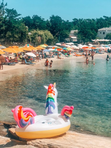 Bir sonraki durağımız Aliki Beach oldu. Koyun içinde kaldığı için denizi çarşaf gibi dümdüz ve masmavi. Çok kalabalık olmasına rağmen denizinin güzelliğinden dolayı çok sevdim. La Scala’nın ortamı ile buranın denizini bir araya getirince bence muhteşem bir plaj ortaya çıkardı. Aliki beach’de yan yana iki üç tane işletme var. Hepsi birbirinin aynısı. Sahil ve kum pek temiz değil, şezlonglar da çok rahatsız. Ama denize açıldıktan sonra tüm kalabalıklı arkanızda bırakıp maviliğe doyuyorsunuz. Şezlong ücreti kişi başı 5 euro. Plaja inişte denize tepeden bakan bir restaurant var. Bence en keyifli yemek noktası burası. Ev yapımı pilav, köfte, balık veya hamburger gibi seçenekler var.