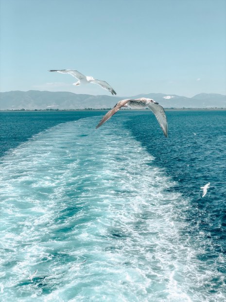 Kapılardan geçtik, feribot biletimizi aldık ve yaklaşık 45 dakika boyunca mavilikte süzülen onlarca martıyla beraber Thassos’a vardık. Huzur dolu ada tatilimiz işte böyle başladı.♡