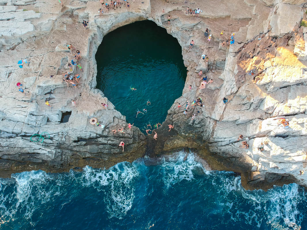 Aliki’den ayrılıp adanın en meşhur noktalarından biri olan Giola Lagününe (Giola Lagoon) doğru yola çıktık. Bu şekilde en kuzeyden doğu sahilini dolaşarak güneye kadar gelmiş olduk. Giola kayalıkların dalgalarla zaman içerisinde aşınmasıyla oluşmuş doğal bir havuz. Gerçekten çok güzel ve mutlaka görülesi bir yer. Tüm gün kalabalık olduğu için bence sabah erkenden gitmekte fayda var. Biz akşam üzeri altı gibi gittiğimizde hava hala 35 dereceydi. Buranın en sıkıntılı yanı ulaşımı. Aracınızı yola parkedip uzunca bir toprak yolu inmeniz gerekiyor. Ya da yolun yarısına kadar araçla inip kayalıkların başladığı noktaya park edebilirsİniz. Biz 4x4 kullandığımız için bu noktaya kadar geldik ama yere yakın bir araç ise hiç tavsiye etmiyorum. Lastiklerin yarılma ihtimali de var çünkü çok kayalık bir yol.