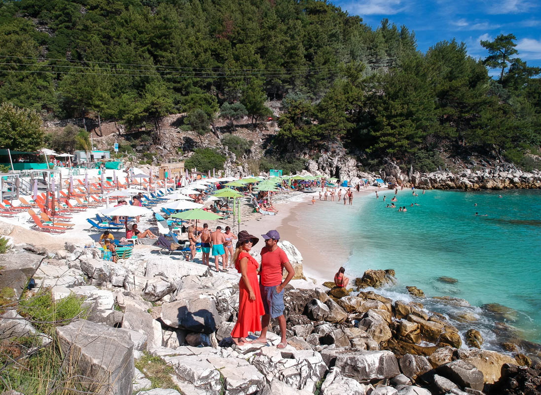 Ertesi gün bu defa yeniden şansımızı denemek için erkenden kalkıp Marble Beach yollarına koyulduk. Ne mutlu ki yol açıktı ve biz en çok merak ettiğimiz kumsalı görmeden dönmeyecektik. Sabah 9 gibi gittiğimizde bizden başka 20 kişi vardı. Giriş ücreti olan 12 euroyu ödedikten sonra en ön ve kenardaki şezlonglara kurulup denizin muhteşem rengini izlemeye başladık. Daha kimsecikler yokken manzara o kadar güzeldi ki saatlerce zamanı dondurup orada öylece oturmak istedim.